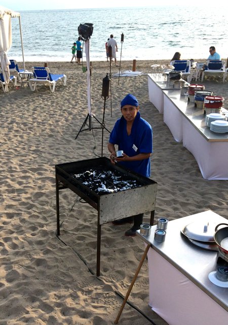 The next day, I ran into a crew doing a BBQ Catering on the beach at my hotel Casamagna Marriott Puerto Vallarta Resort and Spa. First, I met Marcelito, who was firing up the Grill. In an interesting twist, he used dry Sterno Powder as an accelerant on the Mesquite Grill. I am intrigued and will look into experimenting with it sometime.
