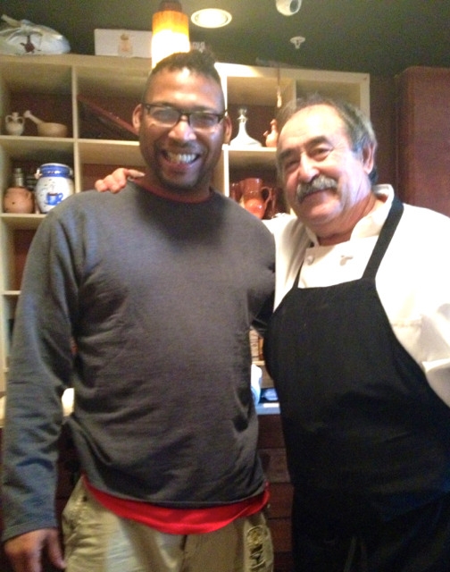 Mick Brown with Felipe Perez at Jamon Iberico Pata Negra restaurant in Miami.